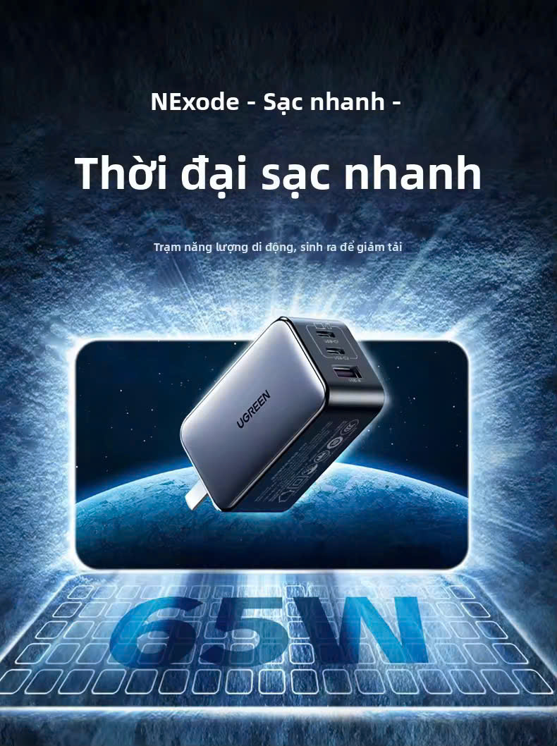 Củ sạc nhanh Ugreen Gan Nexode 3 cổng 65W CD244 là sản phẩm có công suất sạc lên đến 65 W, sạc liên tục với nhiều thiết bị khác nhau, người dùng không cần phải chờ đợi phải sạc từng thiết bị như trước đây.