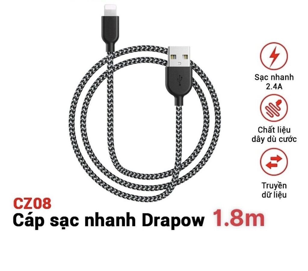 Dây cáp sạc chính hãng Drapow là dòng cáp sạc dây dù đầu tiên hãng đã thay đổi vỏ cáp sau nhiều năm sử dụng chất liệu nhựa kém bền và thay vào đó là trang bị vỏ bọc vải dù...