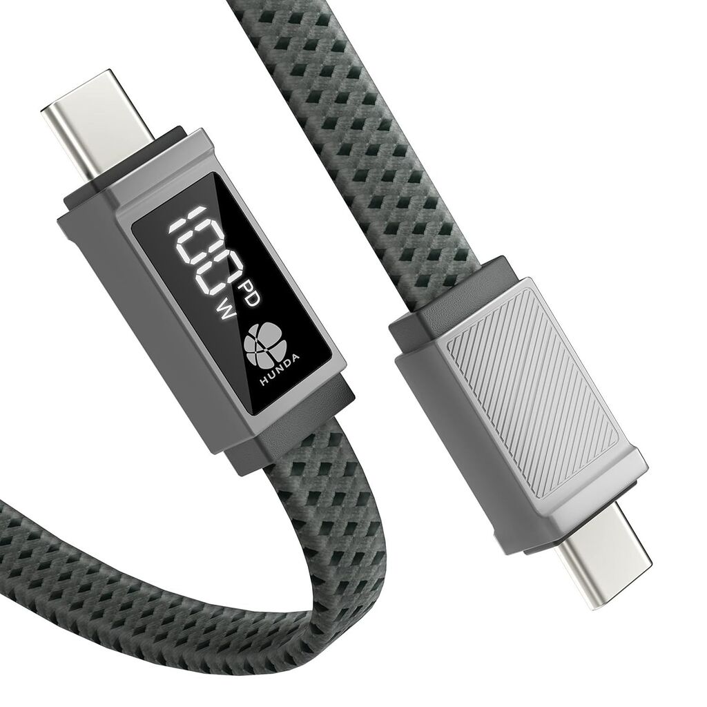 Cáp sạc hiển thị công suất HUNDA HDCC100W sạc siêu nhanh 100W dây bọc dù dài 2 mét