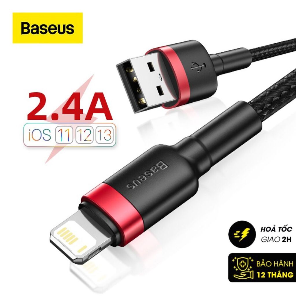 - Cáp Lighting Baseus cho iPhone 5 / 6/ 7/ 8/ iPhone X / iPad . Dùng sạc pin và đồng bộ dữ liệu tốc độ cao cho các thiết bị của Apple qua cổng Lightning .