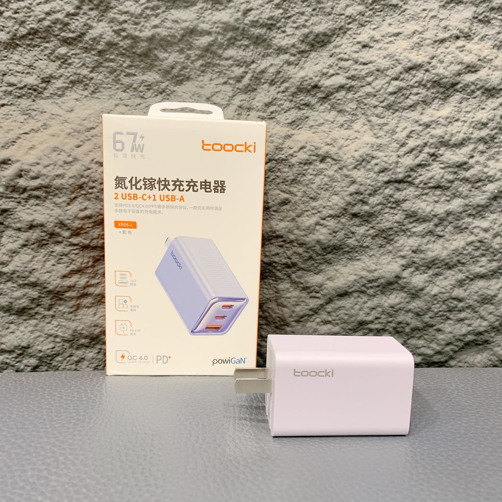 Củ sạc GaN cao cấp từ TOOCKI tích hợp 3 cổng sạc (2 USB-C + 1 USB-A), công suất tối đa 67W, đủ sức sạc MacBook, iPad, iPhone, Samsung, Xiaomi, và mọi thiết bị hiện đại!