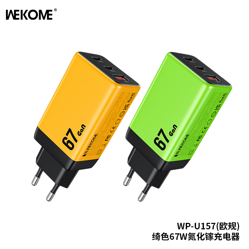 WEKOME WP-U157 thuộc Keylour Series, sử dụng công nghệ GaN tiên tiến cho hiệu suất cao, ít nóng. Thiết kế 1 USB-A + 2 USB-C, hỗ trợ sạc đồng thời nhiều thiết bị với khả năng tự phân bổ công suất thông minh.