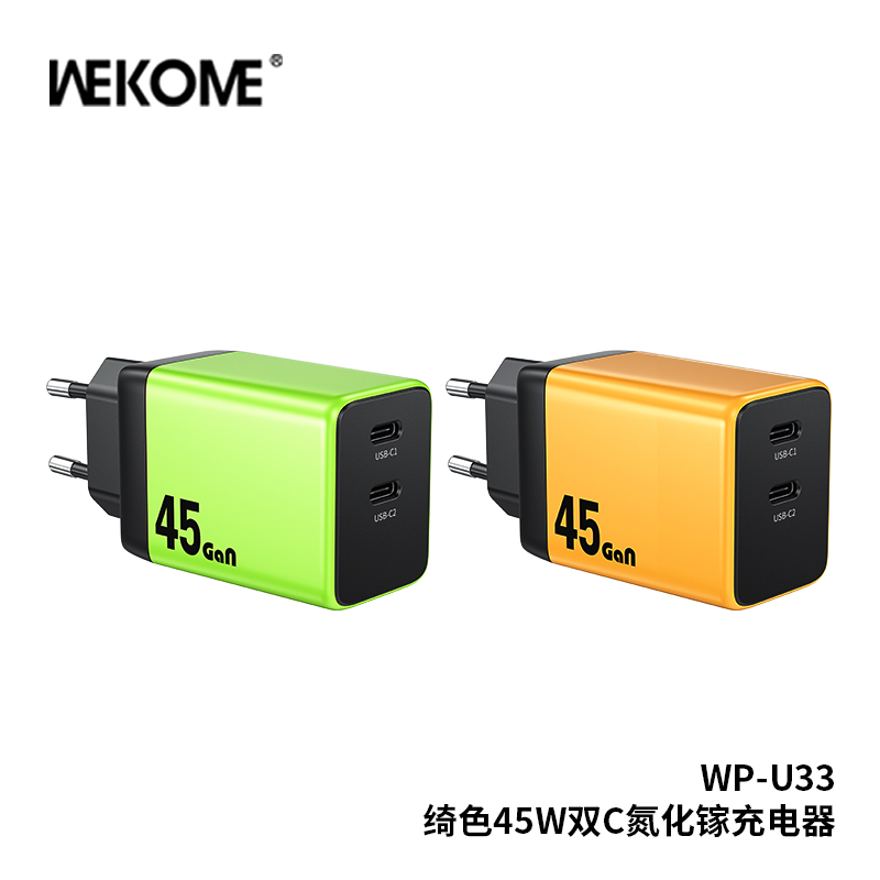WEKOME WP-U33 là củ sạc GaN 45W Super Fast Charge, đáp ứng tốt nhu cầu sạc nhanh cho điện thoại – máy tính bảng – laptop mỏng nhẹ. Thiết kế 2 cổng sạc, chân cắm chuẩn EU, nhỏ gọn nhưng hiệu năng mạnh mẽ.