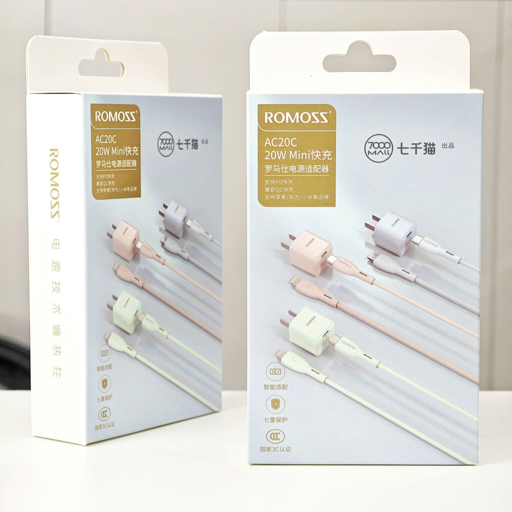 - Củ sạc Nhanh Romoss AC20C Mini PD20W USB-C Hỗ Trợ QC3.0 PD ( gồm củ + Cáp )