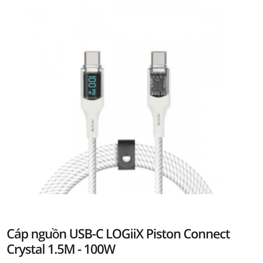 Cáp Piston Connect Crystal là cáp USB Type-C trong suốt siêu bền của chúng tôi, dùng để sạc máy tính xách tay và các thiết bị USB Type-C khác. Cáp thông minh này có thiết kế trong suốt độc đáo, tích hợp màn hình kỹ thuật số thông minh hiển thị tốc độ sạc trực tiếp. Cáp Crystal tương thích với USB Power Delivery cho phép bạn sạc nhanh máy tính xách tay và máy tính bảng với công suất lên đến 100W, nhanh hơn gấp 3 lần so với cáp sạc thông thường. Cáp siêu bền này được cấu tạo từ lớp bện nylon chắc chắn và được gia cố bằng các đầu nối chống chịu lực.