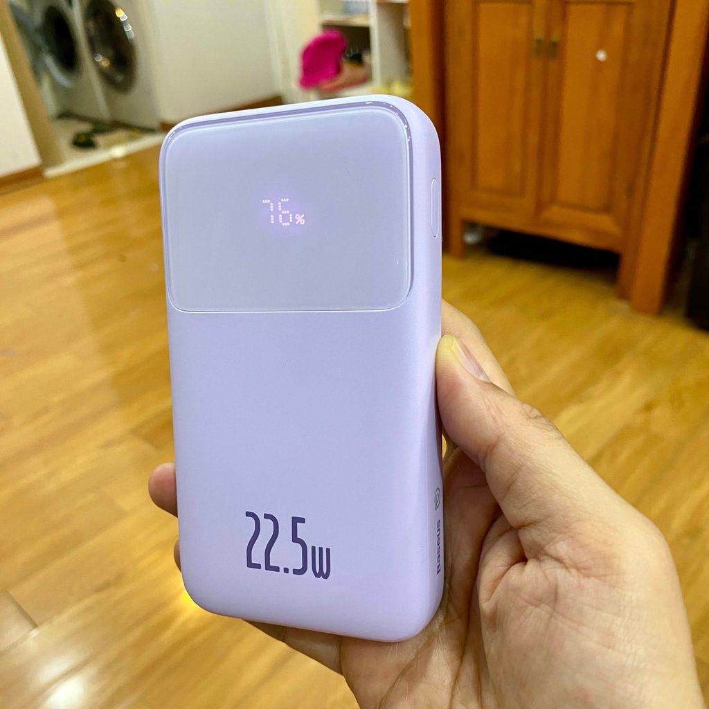 • Ngoài ra, pin sạc dự phòng Baseus còn trang bị màn hình hiển thị phần trăm số pin còn lại, giúp bạn dễ dàng nhận biết và sạc pin nhanh chóng cho pin sạc dự phòng của bạn.