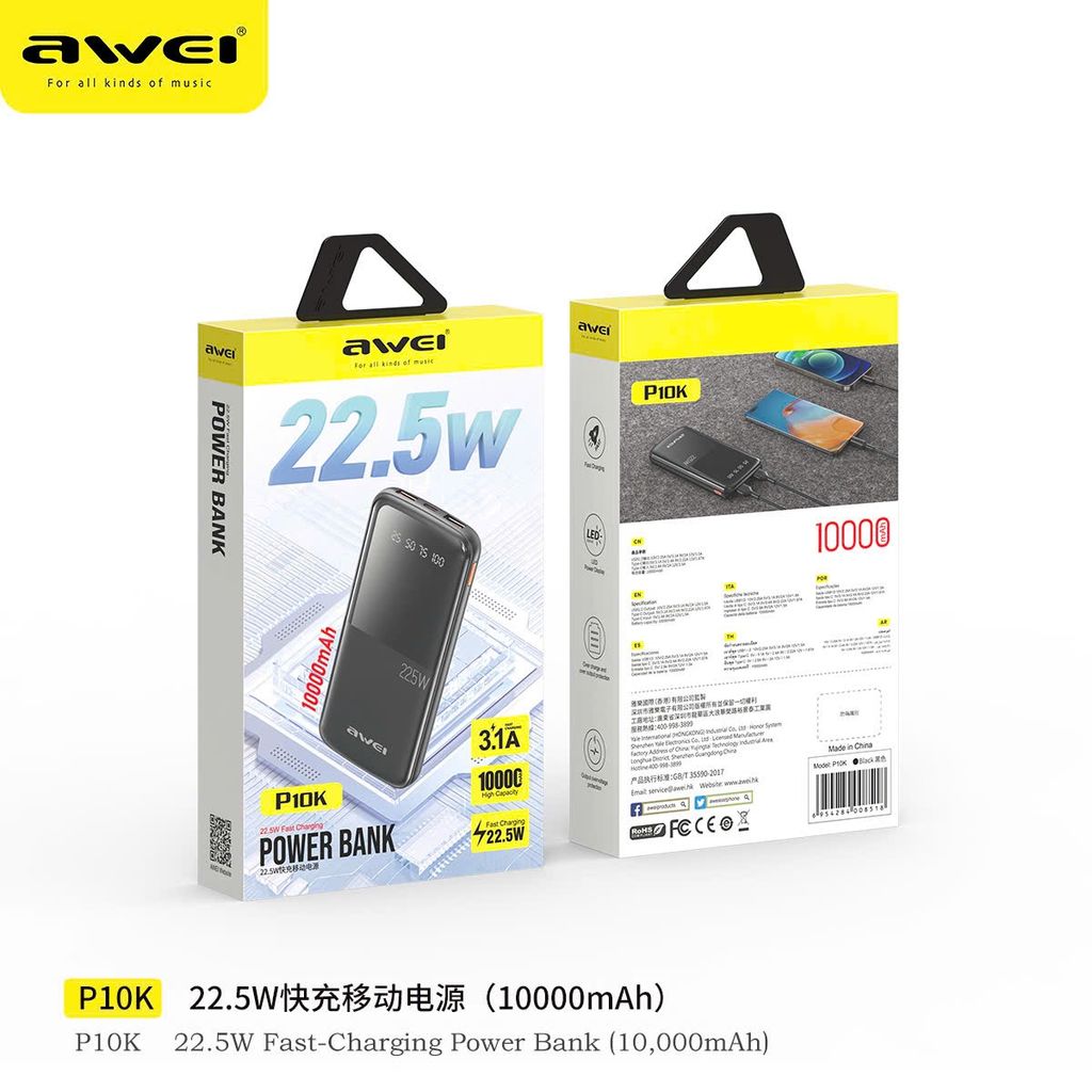 ⚡ Pin Sạc Dự Phòng AWEI P10K – 22.5W Siêu Nhanh, Mạnh Mẽ, Sang Trọng ⚡
