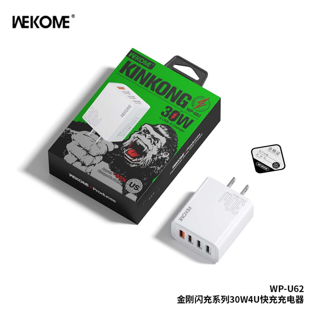 + Bộ sạc Wekome WP-U62 (Kinkong Flash Series) được trang bị 4 cổng USB-A, cho phép sạc cùng lúc điện thoại, máy tính bảng, tai nghe, pin dự phòng... mà vẫn đảm bảo tốc độ ổn định.