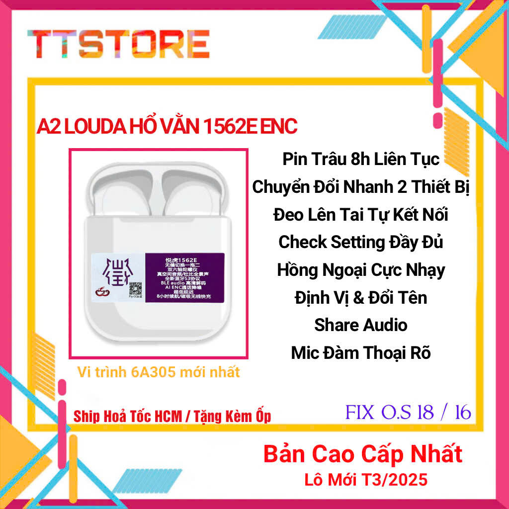 Tai lou/da H/ổ Vằn 1562E Check setting, bản nâng cấp bản cũ âm thanh vòm đã hoạt động được cực xịn, chuyển đổi nhanh giữa 2 thiết bị, Auto connect, Vi trình 6A, Fix pin ảo, Cảm ứng lực, Hồng ngoại, Pin trâu 8 tiếng, Bản Lề Đẹp, share audio, định vị đổi tên full tính năng.