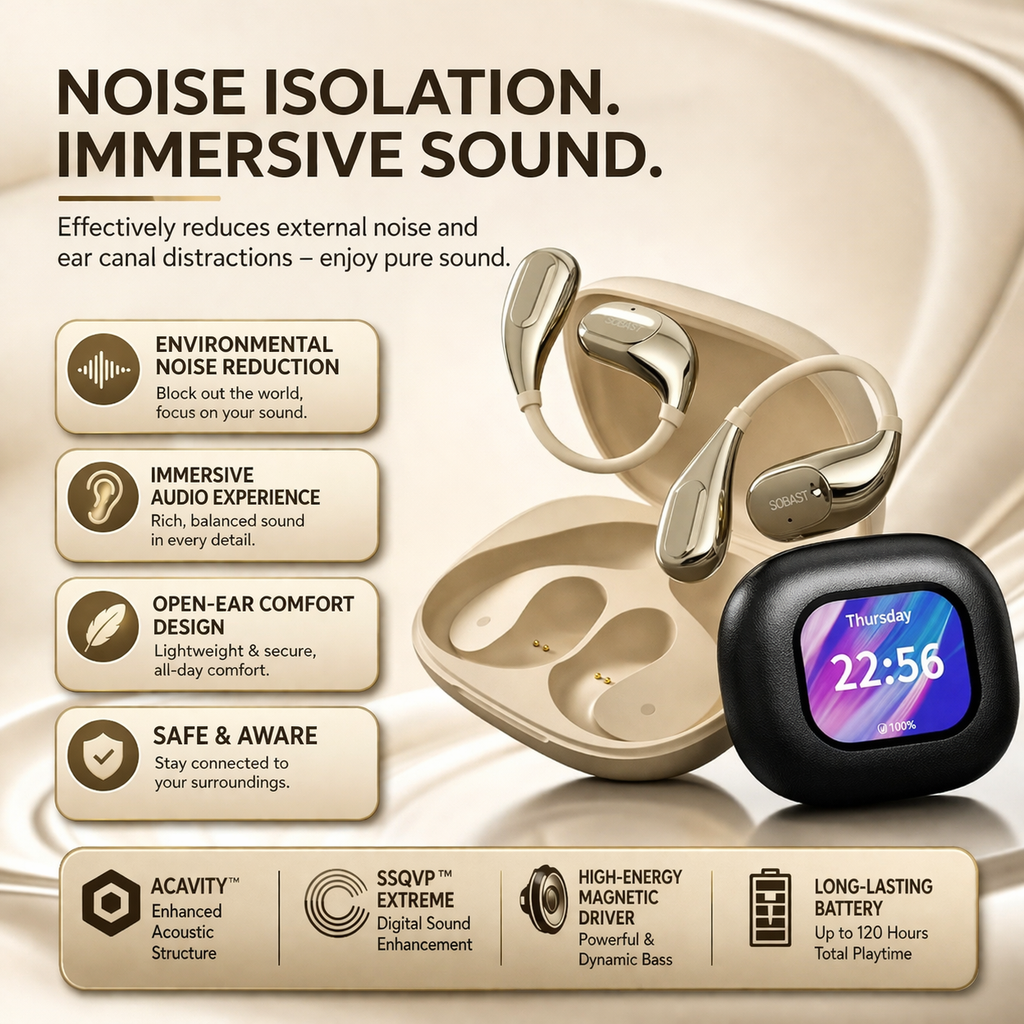 SOBAST S-OW13 Pro là dòng tai nghe Bluetooth cao cấp tích hợp AI thông minh + màn hình cảm ứng LCD, mang đến trải nghiệm hoàn toàn mới: không chỉ nghe nhạc mà còn hỗ trợ dịch thuật, giao tiếp và giải trí đa nền tảng.